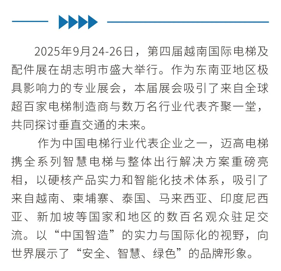 迈高电梯亮相2025越南国际电梯展 | 以中国智造,链接世界未来